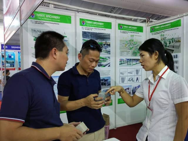 越南是亚洲经济发展速度的国家之一。近年来,越南正加大对基础设施建设和主要城市居民住宅的改造力度,绿色建筑建材装备缺口巨大,为适应市场需求,星空真人机械携绿色建材设备参展了此次展会。展会期间,外贸销售部李经理,认真对待每位来访的客户,详细向其介绍星空真人机械专利产品轻质墙板生产线,复合墙板生产线,保温装饰一体化板生产线等产品的优势,以及设备在东南亚地区建筑建材市场的影响,展会现场就有多数客户,初步签订了轻质墙板生产线、复合墙板生产线加工生产订单。