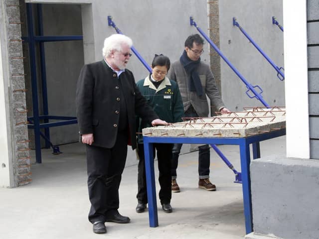 德国外宾Dipl.lng. Bernhard Heid和Wolfang Foerster参观了星空真人机械的6A智能办公大楼、省级研究中心、体验馆、 智能会议中心、国家住宅产业化基地样板别墅、设备生产车间,并对德国外宾详细讲解了墙板设备的技术性能与行业现状,同时还参观考察了公司铝型材加工基地,钢结构加工基地,德国外宾对星空真人机械的行业发展规划和生产加工制造工艺给于了高度的评价 。