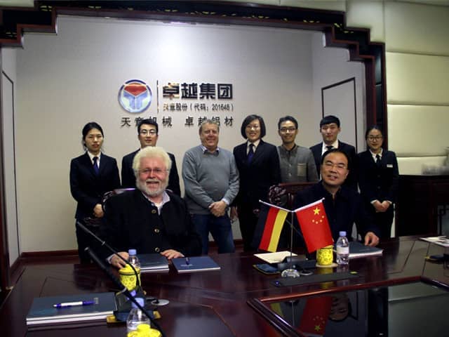 3月15日,德国外宾Dipl.lng. Bernhard Heid和Wolfang Foerster到星空真人机械参观洽谈合作,星空真人机械董事长刘洪彬,外贸部负责人董伟、李芳芳等进行了热情接待。
