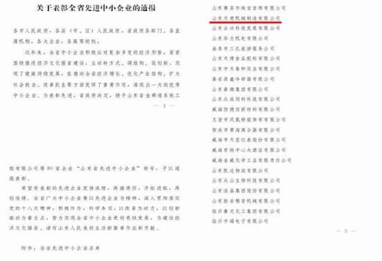 山东星空真人机械被评为全省先进中小企业表彰链接:
