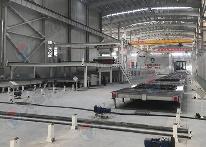 PC环形叠合板生产线采用高精度、高结构强度的成型模具,经自动布料机把混凝土浇筑其中、振动台振捣后并不立即脱模,而是经预养护、蒸汽养护,使构件强度满足设计强度时才进行拆模处理,拆模后的成品构件运输至成品暂存区或室外堆场,而空模台沿输送线自动返回,形成自动化环形流水作业。