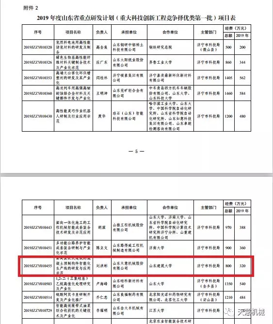 星空真人机械面向装配式建筑的混凝土预制构件智能化生产线的研发与应用项目列入2019年山东省重点研发计划,总计资金支持800万元。