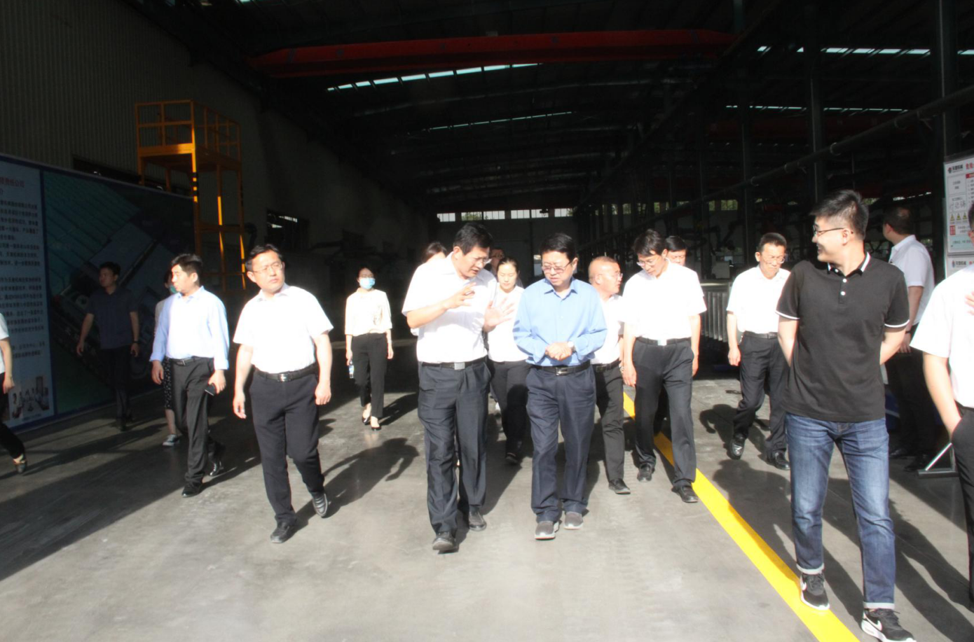 5月26日下午,为加强省级重点项目管理服务,全力帮助项目单位解忧纾困,推动省级重点项目加快建设,济宁市市委、市政府组成由市直相关职能部门参加的联合调研组,市发展改革委党组副书记、副主任董亚宁等领导一行,对星空真人机械入选2020年省新旧动能转换重大项目库第一批优选项目的装配式建筑自动化PC生产线开展现场调研工作。副区长王学虎、区发改委副局长刘守全陪同调研,星空真人机械副总经理尹曙光参与了接待。