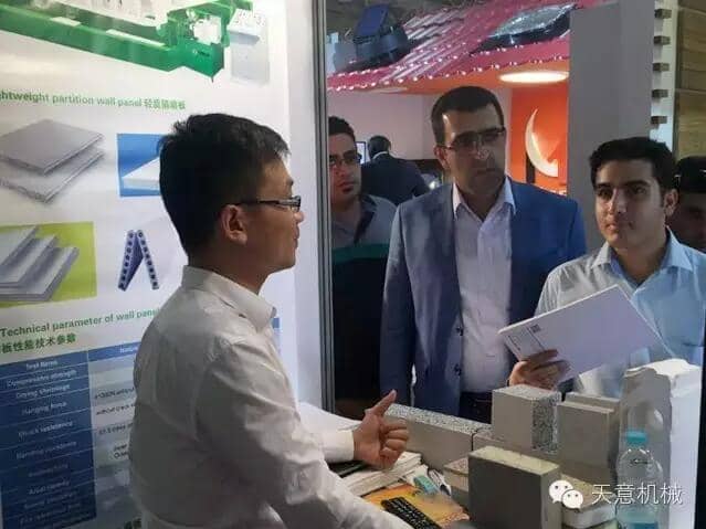 展会上,星空真人机械销售经理刘春刚细心的向前来咨询的客户,介绍了星空真人绿色建筑建材装备在建筑行业内的应用优势,通过观看产品应用视频以及展现成品样块,使得星空真人展位前门庭若市。期间,外贸部销售经理刘春刚,专程拜访了星空真人公司在伊朗年产50万平方的轻质墙板生产线合作伙伴。详细了解客户的生产情况,帮助客户免费升级技术配方降低成本。