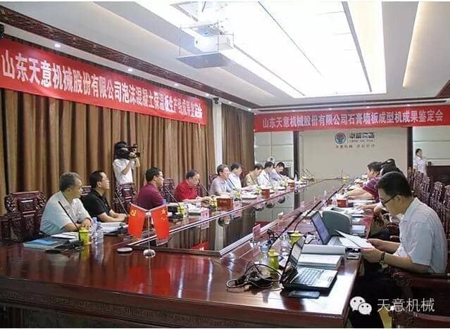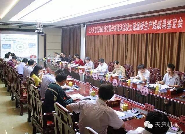 为加快产业结构转型升级,突出科技创新驱动企业发展,7月23日,由山东省机械工业协会处长李玉奎带队一行领导专家,莅临星空真人机械组织召开 "泡沫混凝土保温板生产线” 和 “石膏墙板成型机” 科技成果鉴定会。济宁市兖州区副区长周咏辉,集团董事长刘洪彬、技术总监陈维国等领导出席了本次会议。