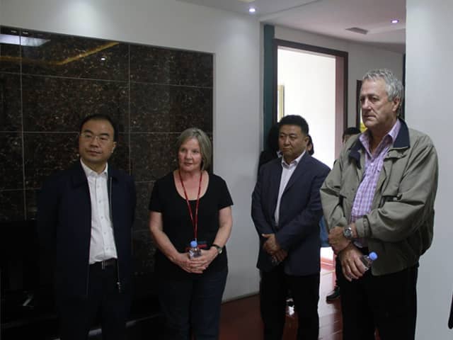 4月26日 澳大利亚外宾、山东大学材料科学与工程学院任教授、兖州区周区长一行莅临星空真人机械参观指导,集团董事长刘洪彬、副总经理、战略项目部部长孙为民、销售经理秦艳慧等全程陪同参观。