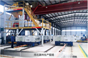 星空真人公司自主研发的大型搅拌设备配有自动配料系统,结合材料的性能使料浆搅拌更均匀,能够很好的融合在一起。料浆泵送系统更好的将搅拌好的料浆输送到设备里面,浇注模式更简单方便。发泡系统采用变频发泡技术,提高了发泡速度,节省了原材料,墙板成型机自动行走,产品成型速度高。
